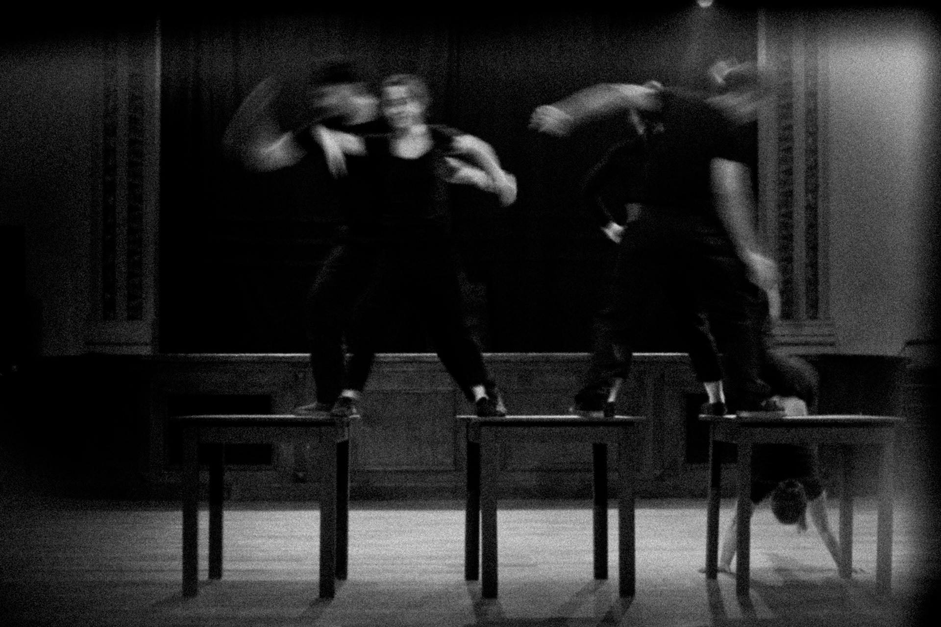 Guiados por la consigna: "¿Podrán estos cuerpos contemporáneos comportarse como los instrumentos de una orquesta de música clásica?", propusieron, en sus palabras: “Destrezas como arpegios cadenciosos, elásticas glisan sobre espacio pentagramado, cuerpos acordes mueven un vértigo coral, acróbatas de cámara armonizan compases en riesgo sin bemoles".